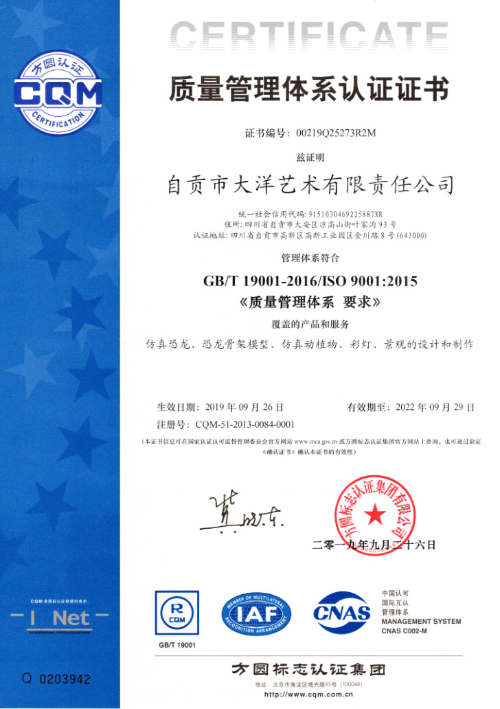 自A(ch)市大z艺术有限责d司简介自贡市大洋艺术有限责Q公司Qؓ中国恐龙展品制作基地Q成立于2009q_是专业从事恐龙化石骨架标本模型、仿真活体机器恐龙、仿真雕塑恐龙、玻璃钢恐龙、恐龙游乐场互动讑֤{展品的研制开发、出售和展览的高U技企业。ƈ在中国古生物专家的指gq行开发制作恐龙和仿真动物展品Q所制作的恐龙展品,被中国科学院鉴定为“优UU研作品”,被誉为“侏|纪”的再现者。公司占地面U?0000qxcI有一支专业研制恐龙标本模型和机器恐龙展品的职工队伍和一套具有先q性能的生产设备,q生产能力ؓ500万美元,其中U?0%的出口。我们研制和生的恐龙展品,以其造型逼真、表皮质感强、动作协调自如、组合情节科学、h(hun)格合理、售后服务佳而倍受国内外客L(fng)青睐和好评。十多年来,我们先后为美国、加拿大、阿根h(hun)、秘鲁、匈牙利、奥地利、荷兰、澳大利亚和我国的香港、台湑֜Z及北京自然博物馆、天z自然博物馆、上然博物馆、重庆自然博物馆、浙江自然博物馆、成都理工大学博物馆、太原中国煤炭博物馆、内蒙二q浩Ҏ(gu)龙博物馆、武汉中国地质大学博物馆、西峡恐龙蛋博物馆、朝阳鸟化石博物馆、河源恐龙博物馆、常州中华恐龙园、云南禄C界恐龙谷{地区的博物馆和恐龙主题公园以及人民公园制作和提供了相当数量的恐龙展品。同Ӟ先后为重庆恐龙公园、v南恐龙公园、晋江新世纪恐龙公园、番古生物博物馆、东莞古生物博物馆、西峡恐龙蛋博物馆设计和陈列布展?/div>